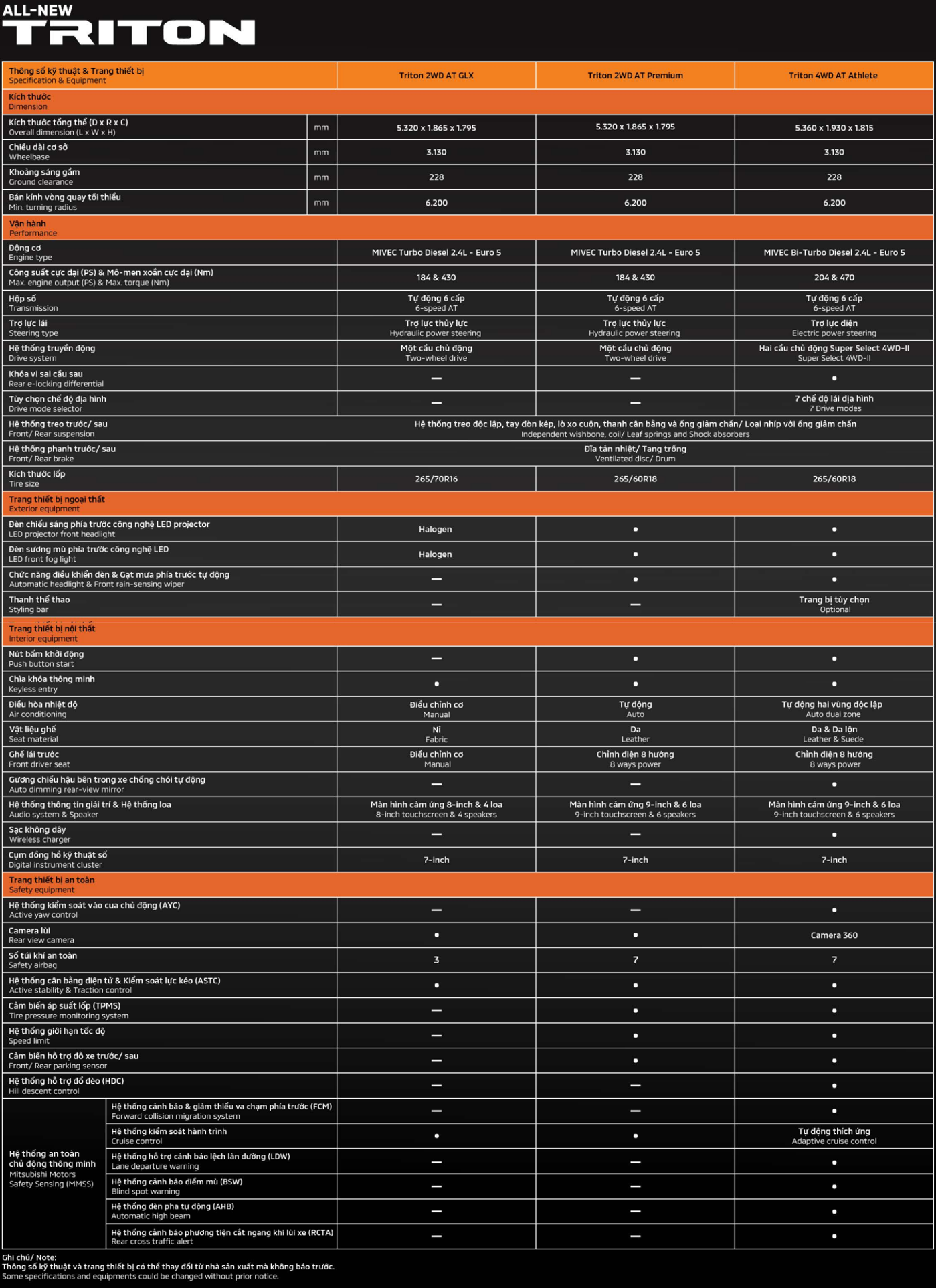 THÔNG SỐ KỸ THUẬT MITSUBISHI TRITON