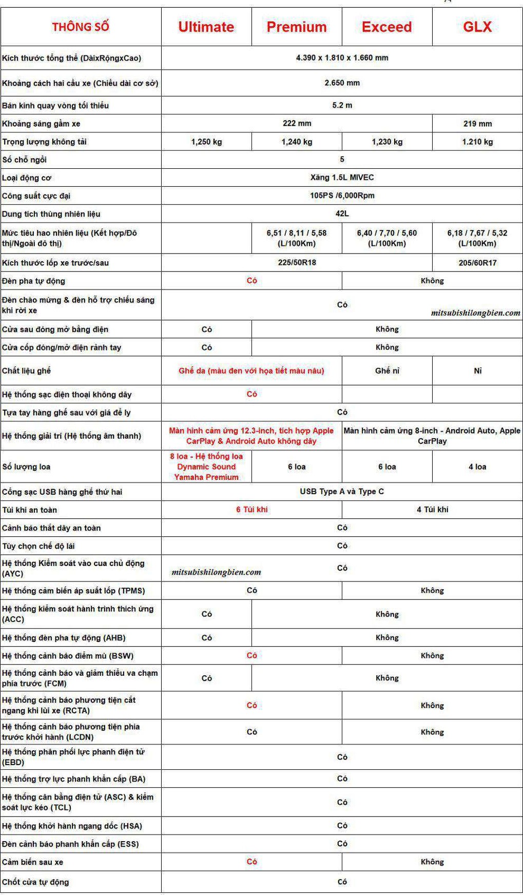 THÔNG SỐ KỸ THUẬT MITSUBISHI XFORCE